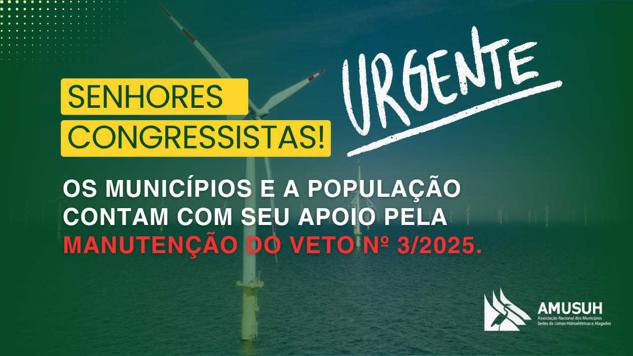 A Associação dos Municípios Sedes de Usinas Hidroelétricas e Alagados (AMUSUH) expressa profunda preocupação com a recente derrubada de parte dos vetos relacionados à Lei