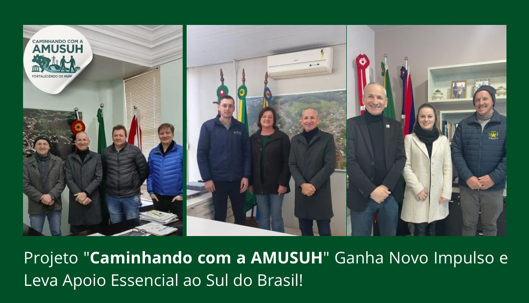 O projeto “Caminhando com a AMUSUH” segue em ritmo acelerado, reafirmando o compromisso da AMUSUH (Associação Nacional dos Municípios Sedes de Usinas Hidroelétricas e Alagados)