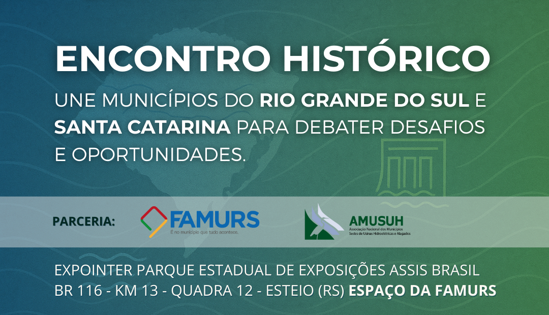 O evento terá início às 14h, no Espaço da FAMURS, na Expointer A Associação Nacional dos Municípios Sedes de Usinas Hidroelétricas e Alagados (AMUSUH)