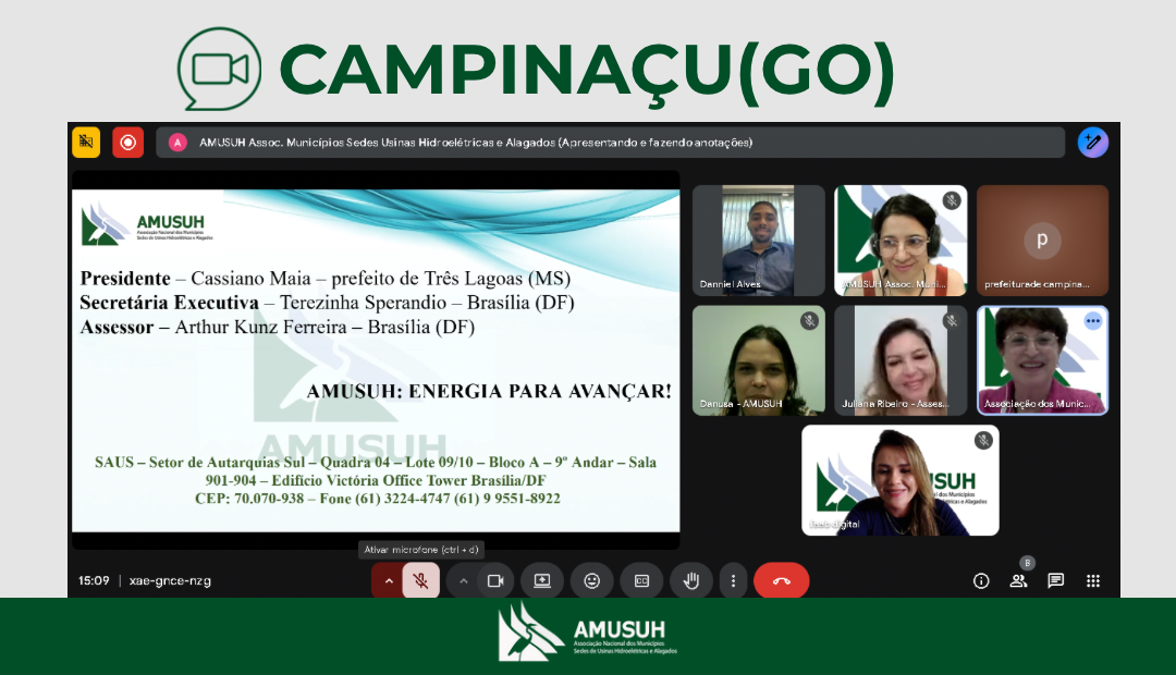 Em reunião virtual solicitada pela agência reguladora, representantes da ANEEL e da AMUSUH fortaleceram um entendimento mútuo sobre como os municípios sedes de usinas hidroelétricas
