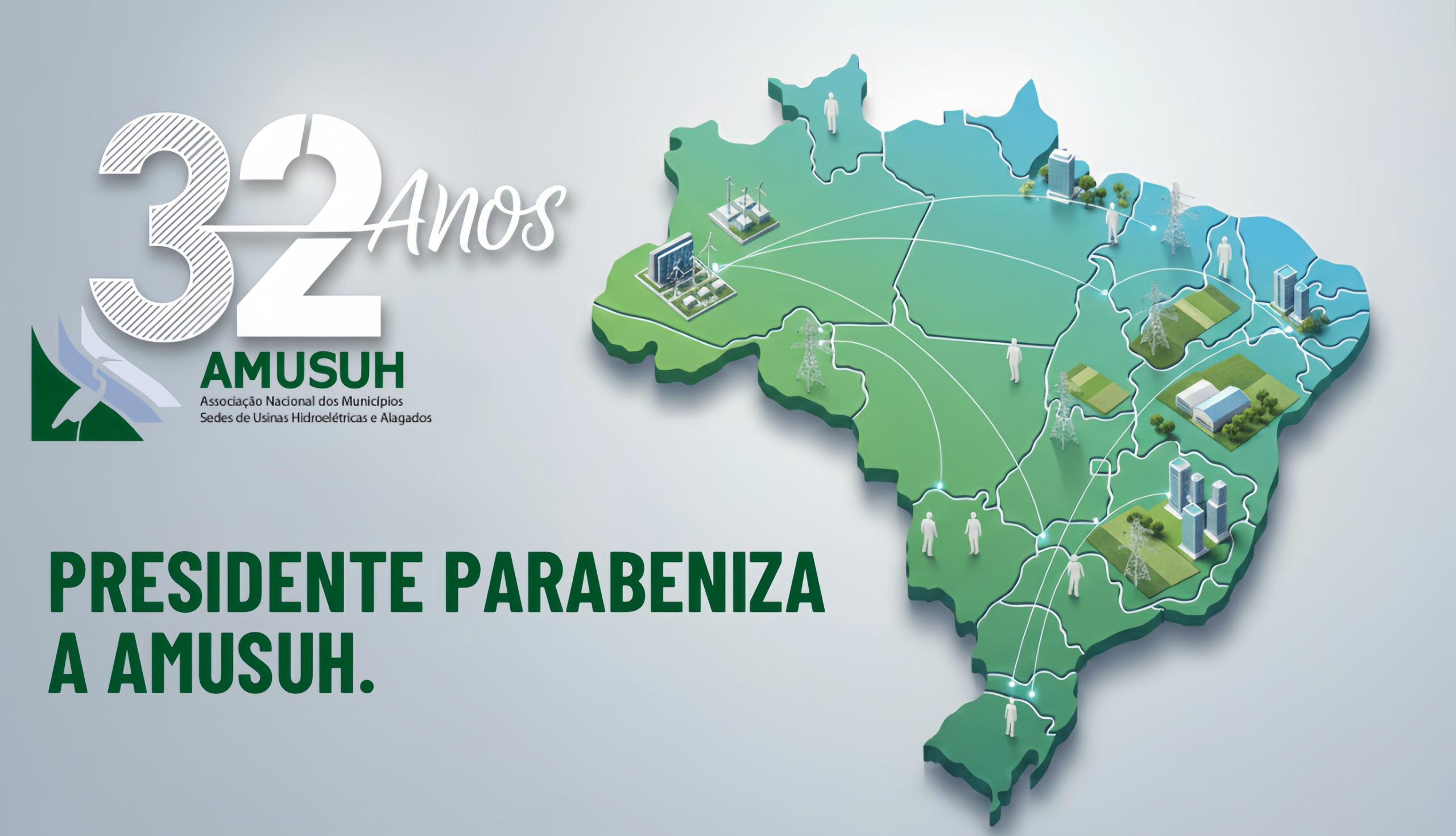 A Associação Nacional dos Municípios Sedes de Usinas Hidroelétricas e Alagados (AMUSUH) celebra, no próximo dia 29 de novembro, 32 anos de fundação. Desde sua criação, a entidade tem sido a principal voz e defensora dos direitos dos municípios.