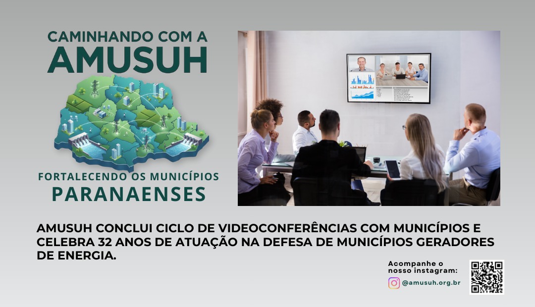 A Associação Nacional dos Municípios Sedes de Usinas Hidroelétricas e Alagados (AMUSUH) concluiu com sucesso mais um ciclo de videoconferências. Dessa vez, a região contemplada foi o Paraná. O encerramento aconteceu ontem, 02 de dezembro.