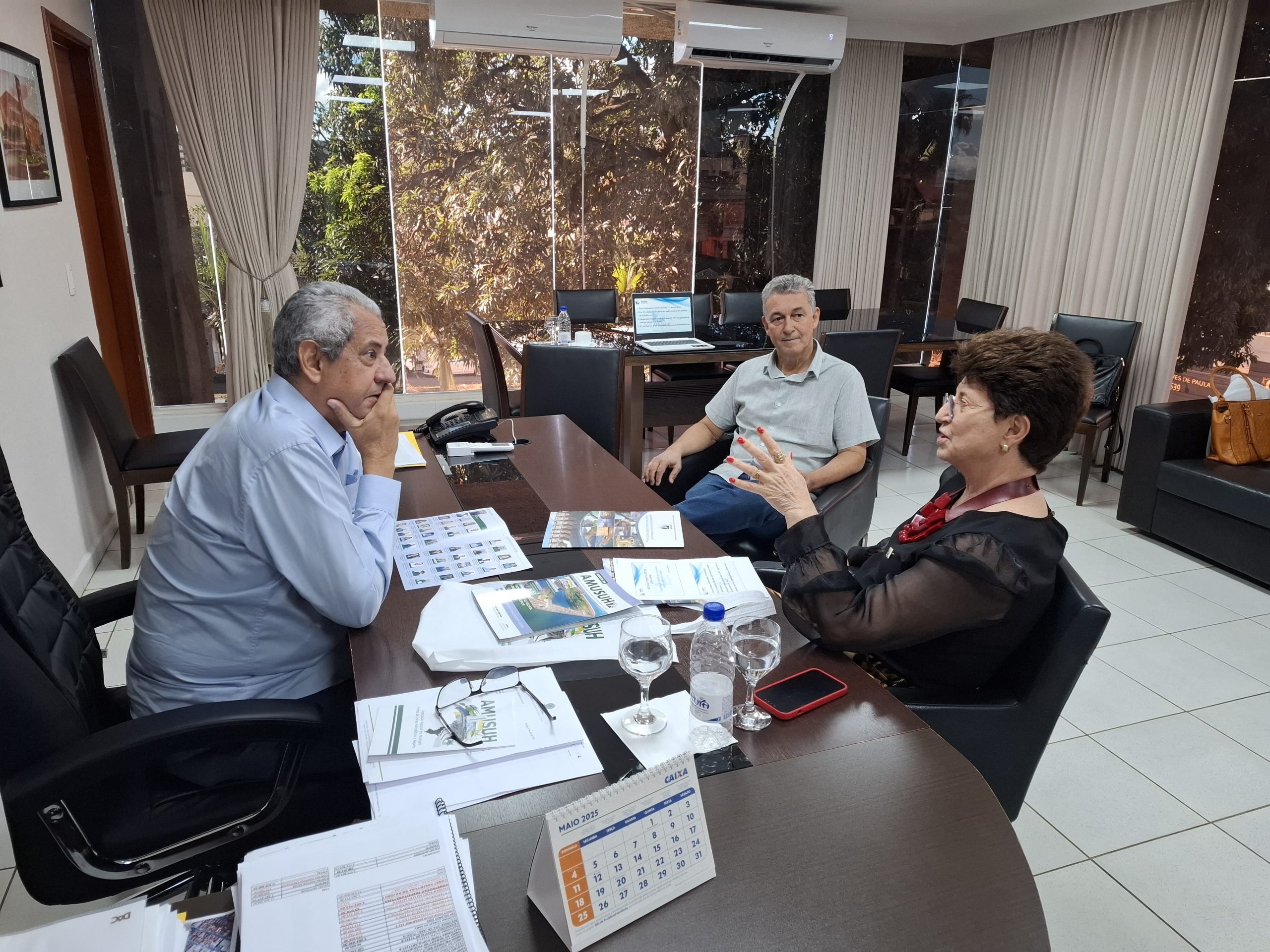 No dia 10/04, a secretária executiva da AMUSUH, Terezinha Sperandio, e o assessor executivo da Associação, Arthur Kunz Ferreira, se reuniram com o prefeito de Catalão (GO) e conselheiro fiscal da AMUSUH, Velomar Rios, juntamente com secretários municipais.